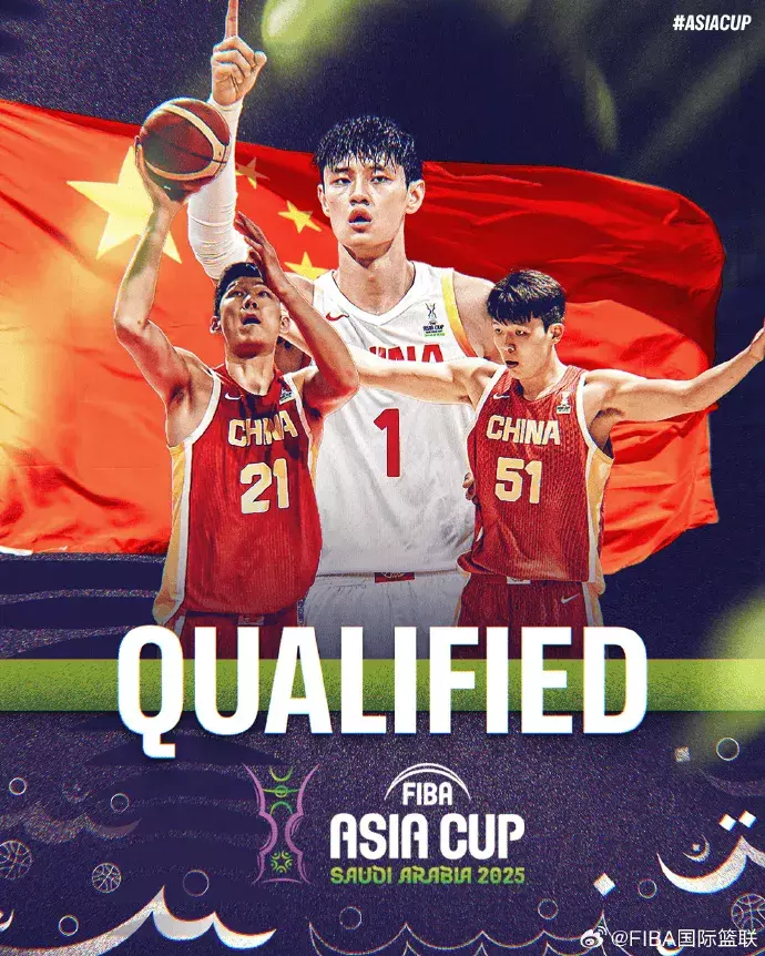 FIBA国际篮联官方发文:恭喜中国男篮成功晋级2025亚洲杯。